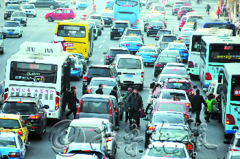 2013年12月31日下午2时许,南大街自东向西方向发生轻微拥堵。一辆52路公交车无法顺利靠站,在最里侧的行车道上停车下客,人车混行很不安全。
