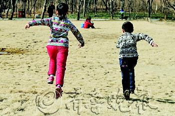| 1日,济南温暖如春,在公园玩耍奔跑的孩子们甚至脱掉了棉衣。 本报记者 周青先 摄