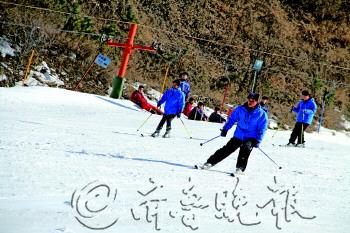 今年元旦的金象山滑雪场格外热闹。精彩的花式滑雪表演、刺激的高山速降比赛……一场精彩纷呈的跨年滑雪比赛让滑雪爱好者体验了一次不一样的跨年。 本报见习记者 万兵 摄