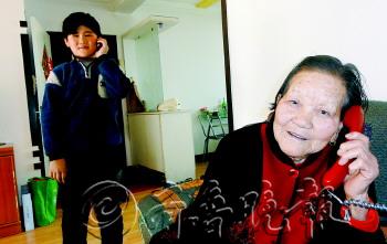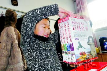 | 宫新凯用好心人送来的手机跟奶奶打起了电话。 本报记者 金夏瑞 摄 |  | 收到全新的百科全书,王艺诺迫不及待地取出来看。 本报记者 金夏瑞 摄 |