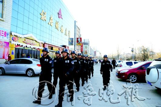 为营造一个和谐、稳定的节日氛围,市公安局特巡警支队在元旦期间进一步加强了城区街面巡逻,提高见警率,增强群众安全感,全力维护街面治安秩序。