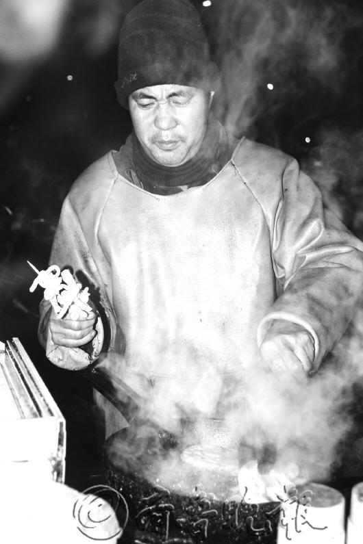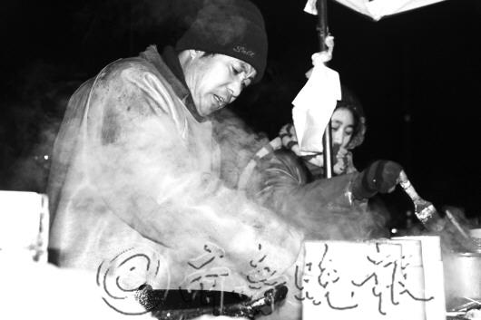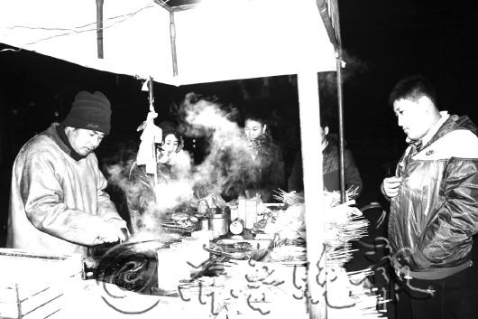 2014年1月1日零点,他们还在忙碌。大街上有这样一批人,怀着对未来美好的憧憬“屏蔽”了热闹节日,当别人因跨年狂欢劳累而睡去时,他们依旧在马路上继续着他们的生计。对于张龙路与妻子李玉花而言,烧烤已不单是谋生的工具,更是一个交际的平台。