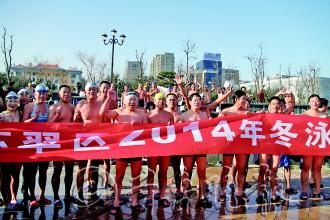 | 环翠区冬泳爱好者庆祝冬泳日,并恭贺新年。 见习记者 桑志朋 摄 |  | |