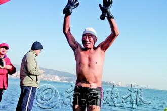 本报1月1日讯(见习记者 桑志朋 实习生 曾庆雪 冯文道 通讯员 张海军) 1月1日是全国冬泳日,当天上午,在威海国际海水浴场和幸福门附近海域,240余位冬泳爱好者相约海边,用集体冬泳的方式与大海“亲密接触”,喜迎新年。 新年伊始,熙熙攘攘的冬泳爱好者和市民齐聚在威海国际海水浴场附近的健身广场上。天公作美,1日当天阳光明媚、海风拂面,广场上彩旗飘飘,市民们纷纷举起手中的相机合影留念。当天是第19个全国冬泳日,来自威海各地八支队伍的100余名冬泳健儿相聚威海国际海水浴场,他们摩拳擦掌进行着最后的热身活动。健儿们一身泳装,在镜头前摆出各种造型,激情飞扬。 十时许,随着一声哨响,早就跃跃欲试的爱好者们纵身一跃,纷纷扎进海水中,高高溅起的浪花引来岸边围观市民的阵阵欢呼。不少健儿入水后,不时地变换泳姿,一会仰泳,一会蝶泳,还有自由泳,好不痛快。 威海市游泳协会一负责人介绍,当天风和日丽,水温较高,多数冬泳爱好者冬泳的时间比往常要长久一些。加上当天是一年一度的冬泳日,爱好者们游得分外地起劲儿,各个充满激情。 镜头切换到幸福门附近海域,十余名志愿者伴着现场火爆的音乐,正大秀热舞,为140余名冬泳爱好者加油助威。体验完冬泳的爱好者们不顾冬日的寒冷,聚在一起为全市市民恭贺新年,并高喊“马年吉祥、马到成功、马上幸福”等寓意吉祥的词汇,一起庆祝2014年的到来。 市游泳协会的张主席介绍,威海拥有广阔的海域,优良的水质等条件,冬泳可以增强体质、提高身体抵抗力和免疫力,希望能有更多的威海市民加入到冬泳的队伍中来,泳出快乐,泳出健康。 83岁老人冬泳 丝毫不逊年轻人 本报1月1日讯(见习记者 桑志朋 实习生 冯文道) 在当天的庆祝冬泳日活动中,年龄最大的是83岁的李宏孝老人。李老参与并爱上冬泳已经整整十年的时间。当日,李老参加完冬泳,又跨上自行车,绕着路边转了几圈,精神头儿丝毫不逊年轻人。 李老介绍,自己第一次接触冬泳是在73岁那年,“儿子是冬泳爱好者,冬泳了好几年,每次泳游完都会鼓励我也参加冬游。”终于,在儿子的说服下,李宏孝开始了第一次冬泳。“开始没什么感觉,游了二十多天后,睡眠明显有了改善,每天晚上睡得真香”,李老笑着说。 见困扰自己良久的失眠有所改善,李老逐渐喜欢上了冬泳。因为老伴的身体不好,因此李老每天早上三点半左右起床,在海港公园附近海域冬泳,五点多回家,再照顾老伴的饮食起居,“游习惯了,不游身体反而不舒服”。 1日上午十点左右,李老骑着自行车赶到现场。没有多余的话,换好衣服他就跳进了海里,尽情凫游,矫健的泳姿丝毫让人看不出这已经是耄耋之年的老人。几分钟以后,老人敏捷地返回岸上,大桶凉水清洗身体以后,老人穿上了衣服。 虽然已经83岁,但李宏孝一点也不服老。上岸后还没喘几口气的功夫,李老又跨上自行车,绕着路边转了几圈,一脸自豪的微笑,丝毫不逊年轻人,引得周围的市民纷纷为老人拍手叫好。 请根据水温调整冬泳时间 市泳协:一月份海水水温在1℃至2℃左右 本报1月1日讯(见习记者 桑志朋) 除了年龄,水温也是影响冬泳的重要因素。 “当水温保持在10℃—14℃时,一般人可以在水中游10—50分钟;而当水温低于10℃时,游泳时间就应当受到非常严格的控制”,威海市游泳协会副主席张志愿介绍,“对于大多数人来说,水温在1℃时,游1分钟最佳,2℃时游2分钟即可,3℃时便可游3分钟。”在1日当天的冬泳现场,游泳协会对时间进行了严格的控制,虽然很多人大呼“没过够瘾”,但为了安全,工作人员还是按照规定将冬泳爱好者们“赶”上岸。 一般来说,威海1月份海水水温在1至2℃左右,2月份水温在-2℃至1℃之间,“冬泳爱好者一定要根据水温把握入水时间,水温越低,身体体温和热量的恢复就越慢,冬泳的目的是健身,不是比谁更能忍受低水温,冬泳者一定要根据水温调整冬泳时间,切勿因为水温原因对身体造成伤害,这样就得不偿失了”,张志愿嘱咐。 冬泳有益身心 但并非人人适合 寒冷的冬天,在刺骨的冷水中畅游一番是考验一个人体能和毅力的绝佳机会。凛冽寒风中,敢博三尺浪,绝对够刺激、够时髦。然而,威海游泳协会副主席张志愿提醒,冬泳虽“时髦”,也要讲科学。 张志愿介绍,冬泳的最大好处是能增强心血管的功能,常年进行冬泳锻炼的人中,患动脉硬化、高血压之类的人极其罕见。然而,冬泳也需要一副好“身板”,一般人肯定吃不消,需要正规的训练和长期的坚持才能练就。 冬泳虽然有很多好处,但也并非人人皆宜。“一般说来,患有严重器质性疾病如心脏病、冠心病、肺结核、肝炎、胃病以及呼吸道疾病的人不适合冬泳。此外,16岁以下的少年和70岁以上的老年人由于身体状况特殊,参加冬泳时要慎重。”张志愿提醒。 除了控制时间,保证冬泳安全还有一些注意事项。据介绍,冬泳爱好者最好在游泳协会注册,威海市游泳协会下设许多冬泳队,每个队里都设有专人负责救护和技术指导,可提供安全保障。没有参加冬泳组织的冬泳者最好结伴而行,互相照顾。 入水前要进行充分的热身活动,入水时要“循序渐进”,使身体逐渐适应水温,切忌猛然入水。游泳过程中,要小心避开水中冰块和水下异物,一旦被冰块或异物划伤,要立即上岸接受救治。出水后,最好能及时淋浴或擦干身体,并注意穿衣保暖。 见习记者 桑志朋 