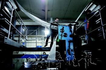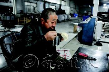 片/本报记者 姜文洁 王鸿哲 文/本报记者 李超 每天傍晚大多数人下班的时间正是他们工作开始的时候,制版、挂版、调试、印刷,一直工作到第二天早上6点。为保证报纸准时上街,他们一整夜都忙碌不停,他们就是淄博鲁中晨报印务有限公司印报分厂的工人。2013年的最后一个晚上,当别人都在与家人一起准备“跨年”时,这些人依然坚守在工作岗位上。 赵德江是制版组的组长,已经在印厂工作了14年,也上了14年的夜班。报社传版后,制版人员对内容进行大体浏览后就开始制版印刷,因此他们也成了每天最早看到报纸内容的人。 “刚开始工作时,每天都能成为报纸的第一批读者,觉得挺新鲜,也很激动,但是现在已经习惯了。”赵德江告诉记者。 印厂的30多名工人,每天都是上夜班,每天凌晨1时30分左右,传版基本结束,制版人员需要先检查日期是否准确、图片是否清晰等,然后就开始上机印刷,印出来后要查看印刷是否清楚,再根据情况调整墨色等。 “我们的工作,最重要的是保证时效,要保证让报纸按时印出来。”工人荆文学说。他告诉记者,晚上8点到零点这段时间,不是很忙,但过了零点以后,时效压力非常大,所有的人都要目不转睛地连轴转,以保证带着墨香的报纸准时上街。 2014年1月1日凌晨2点,记者在车间看到,印刷机组的工人开始忙碌起来,由于有纸毛、油墨等,工人都戴着口罩,车间的噪音很大,他们都说早已经习惯了。 这些工人的新年愿望都很简单,也很朴素。“把本职工作做好,能保证印刷质量和时效就行了。”赵德江说。