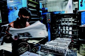 | 印厂工人通宵达旦,确保报纸准时上街 | |