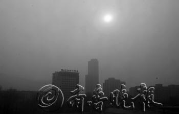| 3日,济南再现雾霾天,中午时分,市区一片昏黄,连太阳也失色了。 本报记者 周青先 摄 |