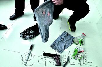 | 劫匪使用的头套等作案用具。 本报记者 袁鹏 摄