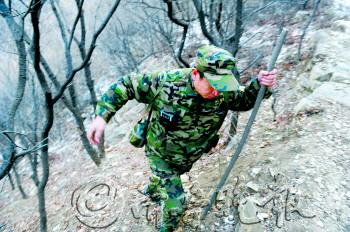 文/片 本报记者 周青先 50岁,守林21年,14个春节,18里山路。这是与守林人刘采法有关的几个平常数字。 济南市东南方向有一大片高山森林,面积达数万亩。其中归属济南市林场龙洞景区佛峪林点的山林有3850亩,这是济南市林场最偏远的一个守林点。刘采法就是这里的守林人。 朴素憨厚的老刘不善言辞。不知是天性,还是长期孤身在林子里形成的习惯。他更善于听和看,能够听见很小的声音,也能看见很远的烟火。 他跟山林打交道,源于父亲。他的父亲1956年到1997年在济南林场工作了半辈子。刘采法1992年也正式进入济南林场。他习惯于凌晨三四点钟起床,因为窗外的鸟早早开始叫,一些松鼠也会来挠窗户和大门。简单吃点饭,背上几件宝贝,包括水壶、步话机、戏匣子,再拿上一根木棍子,就出门巡山了。 巡山路长达18里,他要走上接近4个小时。因为要爬高走低,翻过悬崖,踏过雪地,实在不容易。 每天巡山的任务第一是防火。高点瞭望,看是否有烟火的痕迹;还要巡查是否有盗伐踪迹;还得看是否有人侵占林地乱搭建。一到夏秋季活更多,得巡视害虫蔓延的情况,打防火道,释放周氏噬小蜂等益虫防治美国白蛾等。 让他十分中意的是山下大集上买的一个“戏匣子”——MP3播放器,里面有各种戏剧,听着这个,巡山就不寂寞了。 寂寞,是巡山看林21年最大的敌人。最难受的时候是深夜,四周除了野兽和鸟叫,没有别的声音。除了不时上房顶四周瞭望一下,他就抽烟解闷,两元一盒,进山可不敢带。他不会上网,不会发短信,电话费太贵不敢随便打,有事才与家人联系一下。屋里有同事送的一台9寸小黑白电视机,能收到一两个台。 老刘夜间会想家。他的家在长清双泉镇,有父母双亲和老婆孩子。父亲79岁,眼睛失明。母亲71岁,两次中风,如今瘫痪。2007年,长期巨大的生活压力使妻子患上了严重的精神抑郁症,儿子也失学了。由于守林,老刘自己一个月左右才能回一趟家。 春节期间是防火重点期,老刘更是不能轻易离开林场。21年里,他有14个大年夜是在山上值班度过的。这个林点的制高点,可以瞭望接近1万亩的山林。他先后发现过几次火情,都及时报警组织人力扑灭了。他还救过一位在此轻生的年轻人。这些事,让他觉得自己工作很有意义。 这份工作能带给他每月3000元的收入,家里急需这笔钱养家。他先后看守过三个林点13250亩山林,尽管这活很苦、很寂寞,但他从来没提出过换工作的要求。