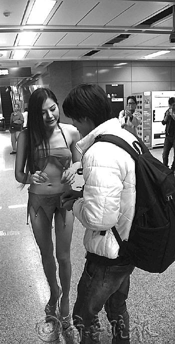 本报讯(记者 师文静) 5日,体育女主播张心儿化身志愿者,身穿豪放爆奶装现身广州地铁站,疏导旅客并为旅客指路,大秀身材,引得路人纷纷驻足观看。