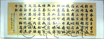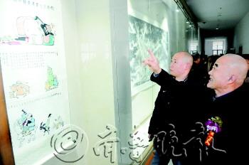 1月5日上午10点,在烟台市美术博物馆,我国著名书画家杨汶千与赵文彬的同名迎春书画展正式开展。在百余名烟台市各界书画爱好者的见证下,杨汶千将亲手抄写的14米长、3米多宽的小楷《心经》书法作品赠予峆 寺。而赵文彬更是展示了以“首富”为题材的漫画作品中的上联,并通过本报向烟台市民“求下联”,还许诺一旦对中,就会馈赠一幅亲笔书画作品。