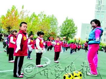 | 今后,历下区的孩子上幼儿园能省很多钱了。图为天气晴好时,某幼儿园孩子们在室外做操。 本报记者 李飞 摄(资料片) |