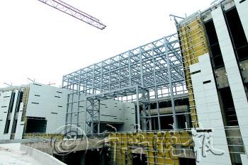 | 文博中心正在加紧建设中,竣工后将给章丘市民的文化生活带来可喜的变化。 本报记者 王鸿光 摄