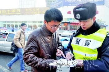 | 民警正在向市民发放调查问卷,征集青年路整治建议。 本报记者 于飞 摄 |
