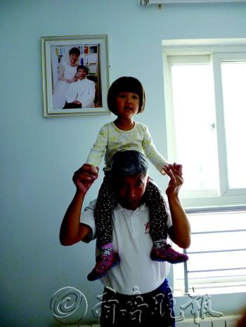 作品描述:孙女骑在爷爷的脖子上,但爷爷不觉得累,还美滋滋地偷着乐呢。