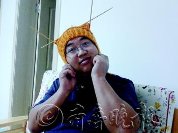 作品描述:把未完成的毛衣先戴头上试试,效果——萌翻了!