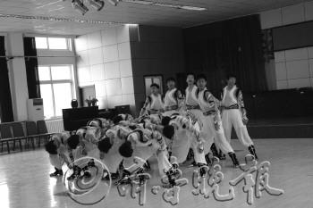 6日下午,青岛40中的男生舞蹈团正在排练舞蹈《鸿雁》,准备赴中央电视台中学生频道的邀请,去北京录制节目。这支舞蹈团目前有26人,清一色男孩,是青岛普通中小学的首支男生舞蹈团。团员们大多从初一开始接触舞蹈,平时都是利用中午和寒暑假临近开学的时间练舞。