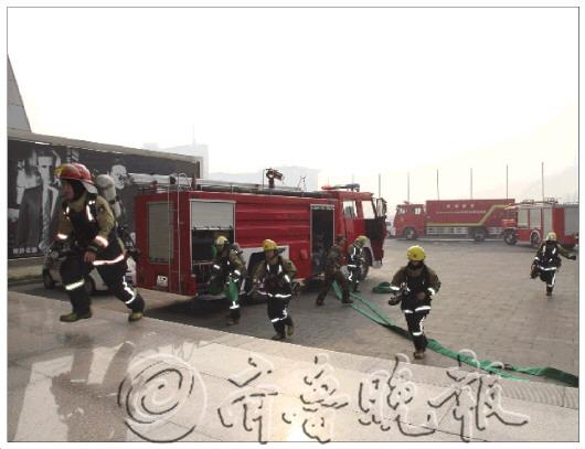 相关链接 消防演练确保两会会场安全 本报1月6日讯(记者 程凌润 通讯员 刘彬) 5日,莱芜消防在莱芜市“两会”涉会场所——会展中心等场馆举行灭火救援实战演练,确保会议安全顺利召开。据介绍,莱芜市公安局消防支队三个中队出动了9辆消防车、50名消防官兵参加此次灭火救援实战演练,刘卫华支队长、孟宪鑫参谋长指导演练。 演练假设会展中心内部凤凰剧院内主席台因线路短路引燃幕布造成火灾,火势迅速蔓延,现场浓烟弥漫。会展中心员工发现“火情”后,立即拨打119报警并启动灭火应急预案。支队全勤指挥部接到报警后,立即调集三个中队3辆水罐车、3辆泡沫水罐车、2辆高喷车、和1辆登高平台车赶往现场灭火救援。 到达现场后,救援战斗组佩戴空呼器深入剧院内部利用红外热像仪进行火情侦察及搜索疏散被困人员,第一战斗组和第二战斗组分别出单干线三支水枪分别从场馆南侧入口A、B区进入,第三、第四战斗组分别从三楼东、北出入口进入并利用室内消防栓向主席台着火部位成扇形立体合围夹攻,场馆外,云梯登高车和高喷车则停靠在场馆南侧对场馆外主体进行射水灭火,经过参战官兵30分钟的通力协作,场馆内大火被成功扑灭,演练取得了圆满成功。