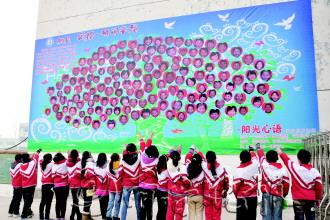 春节将至,峄城区底阁中心小学校门口的幕墙上展出了学校评选的阳光少年的笑脸,一张张灿烂的笑脸每天愉悦着师生们的心情。图中,孩子们在笑脸墙下正寻找自己的笑脸。 本报通讯员 孙晋之 本报记者 杨霄 摄影报道