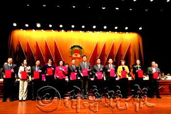 | ▲日照市政协九届三次会议第三次全体会议现场,对九届二次会议的12件提案进行了表彰。