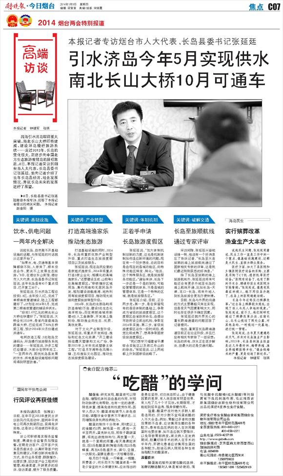 引水济岛今年5月实现供水南北长山大桥10月可通车