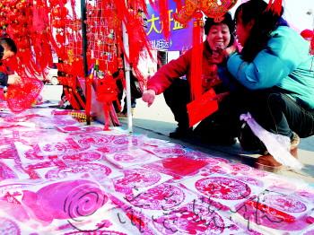 腊八过后,春节的气息愈加浓厚,赋闲在家的市民早早地就开始置办年货,福山大集作为百年老集市,是老烟台人置办年货值得一去的好地方。9日正是福山大集赶集的日子,奇泉路熙熙攘攘,市民拎着大大小小的包裹,路边停满了各式车辆。虽然才腊月初九,但红彤彤的对联,红火火的挂件,给集市添了浓浓的年味。 饽饽磕子卖得欢 “28块钱一个,45块钱两个,都是手工雕刻的,过年做饽饽用,好看着呢。”每到过年前,卖饽饽磕子的摊主老王总是忙得不得了,摊前熙熙攘攘的人群中,总有几位市民在老王摊前驻足,打听磕子的价钱。 天寒地冻的,老王围着头巾,两手蜷在袖筒里,边吆喝边说,从早上开始到10点多,自己的摊子已经卖掉30多个磕子。“今天天气冷但还卖得还不错,我老伴儿在那边,我俩分开摆,卖得多点儿。” 俗语“饽饽磕子”,其实就是人们所说的面食模具。胶东地区每到过年,做花馍、年馍、磕饽饽等,花样模具是不可缺少的“武器”。“我这里大部分是莲子模和鱼模,莲子模寓意多子多孙,鱼模寓意年年有余,显得吉祥喜庆,过年人们用得多。”老王指着柳木做的模具介绍道。 此外,包饺子用的箅子也备受市民热捧。“12块钱一个太贵了,10块钱吧,我买四个,你也不亏。”记者路过一个卖箅子蒸笼什物的摊位前,一位市民正在和老板讨价还价。 春联便宜三分之一 红彤彤的春联挂件是年货中的“主角”,大量的春联挂在市面上,火红的福字铺在摊子上,吸引了不少人的眼球。 “今年春联的价钱没怎么涨价,和去年差不多,不过集上的东西更便宜些。”第一年开张做春节挂饰生意的年轻人张哲告诉记者,自己本来打算去三站市场批发挂饰的,但是价钱有点高,“一件普通的福字挂串,三站就卖30元,批发给我还得23,我自己去别的地方批发才14元啊,卖20也赚不少。” 春联挂饰摊位前虽然时不时有人过来买走几张对联,不过,现在还不是春联销售最旺盛的时候。销售挂件的摊主徐师傅说:“等到腊月二十以后就差不过了,我一个上午卖了才1000块钱,但是到旺季的时候,我这一天能买个3000来块钱呢。” 摊主期待年根拼一把 “问一问价钱就走了,今年到底是怎么了,东西卖不动,老上火了。”李女士戴着一副老式眼镜,站在自己的摊子前,脸上没有一丝笑意。 下岗之后,李女士独自一个人开起了杂货摊,本以为进了腊月,买剪纸画贴,生意会好一些,还特意让上班的小女儿请假休班,帮自己招呼生意,但是眼看着一上午过去了,才卖出去200多块钱。 李女士说,自己的剪纸很精致,价钱与去年比起来,一点也没敢涨。但是,去年这个时候生意早已红红火火,现在人们大多是过来问问价钱,看看东西就走了。 李女士指着附近卖橘子的卡车告诉记者,去年一卡车的橘子,人们都抢着买,今年却卸不动货,“钱越来越难挣了,希望到年根的时候,生意能好一些。”李女士无奈地收拾着摆了一上午的剪纸画。 年货备战提前“热身”,9日,市民在福山大集上选购春联。 本报记者 张晶 摄