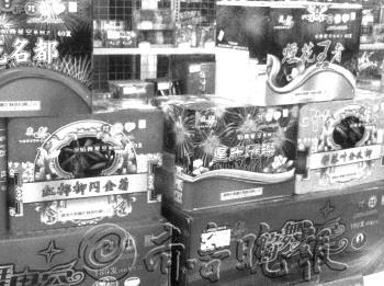 | 10日,省城山大南路一家烟花爆竹批发店内,环保型烟花品种不少。 |