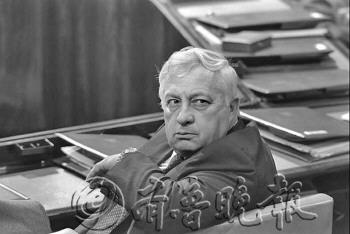 | ◥1985年5月6日,时任以色列工业和贸易部长的沙龙参加议会会议。