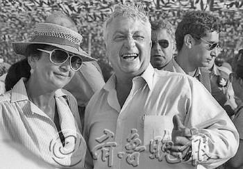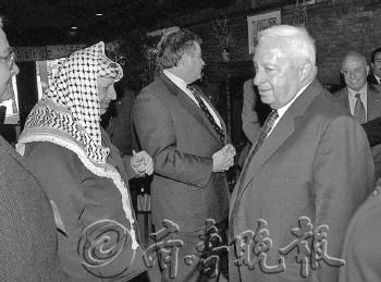 |  | 1998年10月21日,沙龙与阿拉法特在美国出席中东和谈会议时相顾无言。新华社发 |  | 1982年7月15日,时任以色列国防部长沙龙携妻子莉莉参加在以空军基地举行的航空展,沙龙开怀大笑。 新华/路透