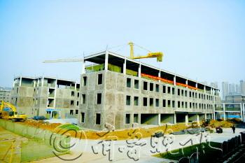 | 11日,在济南市西客站片区安置三区,中小学产业化试点项目的小学部分现已封顶,马上进入装修阶段。 本报记者 王媛 摄 |