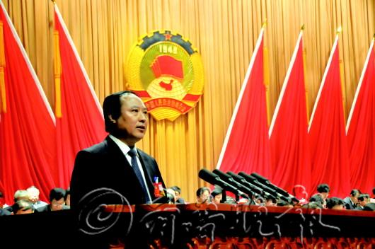 市政协主席孙承志作工作报告。 本报记者 李运恒 摄