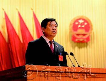 市检察院检察长黄敬波作《淄博市人民检察院工作报告》。   本报记者 王鸿哲 摄