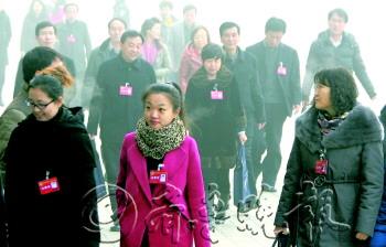 | 1月11日,政协委员步入会场,参加政协会议。 本报记者 马志勇 摄 |