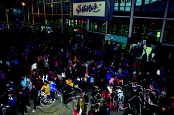 13日6时,天还没亮,交运黄岛汽车总站候车厅内挤满旅客。随着西海岸各高校陆续放假以及农民工返乡,从11日开始,该站迎来客运高峰,最近3天来,每天的客流量都达到上万人。 本报记者 潘旭业 摄影报道