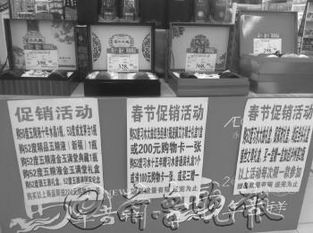 | 各品牌白酒春节促销加大力度。邱晓宇 摄 |