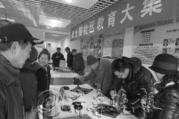 10日上午,云南路街道办事处联合市南区社区教育中心联合举办的迎新春社区民生服务大集热闹非凡,吸引了邹县路社区的300多名居民前来参加。社区书法爱好者现场写“福”字、春联,免费送给到场居民;剪纸艺人剪福字或十二生肖,增添春节喜庆气氛;现场还有家电维修、磨刀、修鞋、理发等惠民服务。