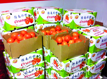 新鲜的赣南脐橙已经到货,许多市民开始电话抢购。 本报记者 王传胜 摄
