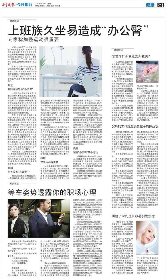 上班族久坐易造成“办公臀”