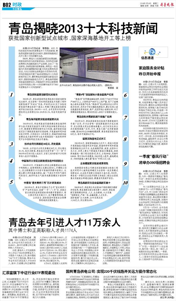 青岛揭晓2013十大科技新闻