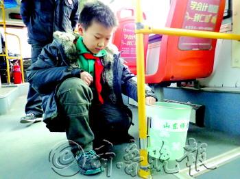 本报1月14日讯(记者 孟燕) 因为坐公交车上学时,经常看到有乘客往缝隙里扔垃圾,12岁的小学生曹宸卿设计了公交车用的可拆卸垃圾桶。14日,这种创意垃圾桶在79路公交车上试用。 曹宸卿在山师附小上小学六年级,每天上学、放学都乘坐79路公交车。“我对79路公交车都有感情了,早上上学的时候,经常看到有人吃完早饭就把塑料袋塞到了坐椅或窗户边的缝隙内。”曹宸卿说,这样既污染公交车内的环境,又影响乘客的心情。 14日,驾驶员卢风明表示,79路车上现在都配备了垃圾桶。“公交车是移动的,现在是用铁丝穿过垃圾桶然后固定在门口扶手处。这样不好,倒垃圾不方便,得频繁拆下来再安上。”他看了曹宸卿设计的垃圾桶赞不绝口。 在公交车上,曹宸卿给驾驶员和记者展示了他设计的垃圾桶。垃圾桶外有固定的一圈铁皮,上面有类似于插销样的东西。将配套的套环固定在车门口扶手上,垃圾桶上的插销插入套环就可以使用了。 从去年10月份曹宸卿有了设计公交车可拆卸垃圾桶的想法,到最近完工,一共用了4个月。“我放学坐公交车的时候就量一量扶手的宽度,做套环用。”曹宸卿说,他制作垃圾桶非常用心。 山师附小环保课指导老师邢西风表示,这已经是改良后的产品了。刚开始的设计是把垃圾桶钉上钉子,但对垃圾桶本身会有损坏,现在外面套的这个环形铁皮并不好做,因为垃圾桶并不是直上直下的,铁皮需要做成一个倒锥形。 “不算垃圾桶,成本才3块钱。”曹宸卿希望能在全市公交车上推广这种既方便又环保的垃圾桶。79路车队负责人表示,如果试用情况良好,将会进行推广。