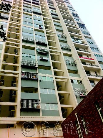 | ◥男孩是从晒有被子的13楼窗户处坠楼的。见习记者 戚云雷 摄 |