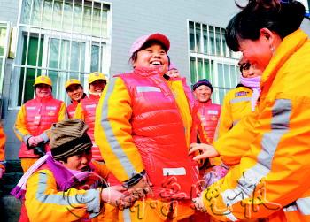 本报1月14日讯(记者 肖龙凤 通讯员 林玉开 孙红丽) 14日下午,历下区解放路街道办事处联合辖区单位山东颐正大厦、中豪大酒店向解放路环卫所86名环卫工人免费发放了爱心羽绒马甲。