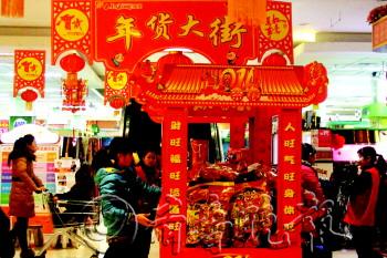 14日,卖场的年味越来越浓,到处洋溢着节日气息,三八路银座商场的年货大街也开始了春节促销。 本报记者 王小会 摄