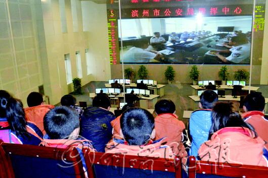 1月9日下午,市公安局组织开展了“警营开放日”活动,邀请社会各界代表现场实地参观市公安局110指挥大厅,“零距离”体验110接处警工作,让群众了解110接处警工作流程,体验110接处警工作的具体事项,并征求社会各界对110的意见和建议,不断加强和改进110接处警工作。图为逸夫小学三年级七班的老师、同学在滨州市公安局指挥中心参观。