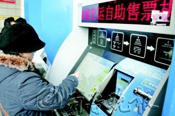 还有1天就进入春运时间,许多人已提前踏上了回家过年的路。为保障春运,聊城汽车总站增设购票窗口、自助购票机、增加安保人员等。图为14日,一名旅客在自助购票机前购票。 本报记者 李军 通讯员 吴萍 摄