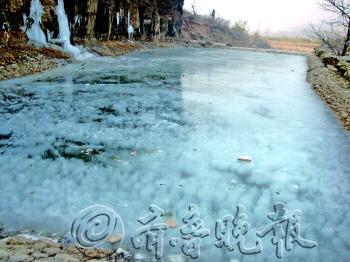 文/片 本报记者 贾文圆 通讯员 李贞寅 寒风凛冽,冻住了不少景区的旅游气氛。近期济南市知名景点灵岩寺也少有游客,春节还未到,这里香火寥寥,山林一片寂静。然而在灵岩寺周边,却有一处寒冬里独特的风景——“冰瀑崖”,值得一看。 冬季冷风装点,“滴水崖”变身 “冰瀑崖”其实是游客给起的名字,实际上是夏天的滴水崖到了冬天后的景色。滴水崖,又名雨花岩,是长清区灵岩寺境内一处奇特的景观,该景观因水流从断崖处散落形似雨花而得名。一到严寒的冬季,滴水崖上的水流就凝固成条条洁白如玉的冰柱,挂满整个山崖,形成一道“冰瀑”,景色迷人,气势壮观。 1月15日上午,记者一行前往滴水崖观看冰瀑奇景。进入灵岩谷口,沿着小路前行,就能到达一处大石桥。听村里的人说,该桥为宋大观二年寺僧仁钦建造,石桥名为崇兴桥,又名通灵桥,村里人通常称它为大石桥。如今古桥已废,人们又在古桥一侧修建了新桥,桥畔松柏葱郁,鸟鸣山幽,景色宜人。 桥南对过是雨花源休闲区,景区附近松竹苍翠,楼台林立,坊榭错落。在这片竹林外,同行的李老告诉记者,这里的竹子也有一大特色,就是每一片都自成一种,各自不同,细看确实有所区别。竹林苍翠,与对岸墨色森森的松柏相呼应,寒冬里倒是显得有些别样。 在一村民指引下,我们沿着田间小路前行,过不多久,就到达滴水崖。远观滴水崖,首先映入眼帘的是一尊巨型镏金滴水观音像,该观音像几乎与山崖同高,气势恢宏,色调明艳,为滴水崖增添了一份别致的美感。据同行友人介绍,该观音像是人们为配合滴水崖而修建。观音像正前方就是两座庙宇,分别为观音院和伽蓝院。 滴水观音像的身后就是滴水崖,滴水崖位于山阴水阳的河谷南、明孔洞脚下,长约百米,高数丈。据说,滴水崖处的水常年不断,水从峭壁岩缝间流淌而出,每逢春、夏、秋三季,这里都滴水如洒,水花四溅,整个山崖,形成一道道水帘,滴水丁冬作响,一到滴水成冰的冬季,滴水崖自上而下滴落的水,在寒风中立即凝结成一个个冰柱,冰柱渐渐由小变大,由短变长,冰柱与冰柱相连接,最终形成一道洁白的“冰瀑”,挂满整个山崖。 独特景观,乾隆7次游览 由于2013年雨水较少,加之这个冬天不是特别冷,呈现在我们面前的滴水崖只形成了一小部分冰瀑,但这一小部分冰瀑就足以让人一窥滴水崖昔日的壮观景象。靠近滴水崖,我们发现山崖上凝结成的冰瀑形状各异,有的似柱,有的似钟,有的如笋,有的细长如探针指向地面,千变万化,晶莹剔透,泛着幽幽的光,美哉妙哉似后面隐藏着神宅仙窟。这些形态奇异的冰瀑还时不时地滴落一滴一滴的清澈水珠,将水珠接入手中,并没有感受到水的冰寒。冰瀑大多白如雪,还有一部分冰瀑透着微微蓝色,在阳光下观望,宛若碧玉,惹人怜爱。 滴水崖危岩叠起,怪石嶙峋,上有林立的古柏、青松与褐色山石相辉映。滴水崖脚下是一处河湖,湖面已结成20厘米的厚冰,冰面清透碧绿,颜色与冰瀑相近,让人忍不住想伸手抚触。滴水崖不远处,就是一片竹林,翠绿繁茂。 据史料记载,清朝乾隆皇帝曾七次前往灵岩寺观光游览,每次到达灵岩寺,都要驻足滴水崖。据说,乾隆被滴水崖的景观所吸引,在观赏滴水崖的同时,挥笔写下了“雨花岩”三个苍劲有力的大字,并镌刻石碑,镶嵌在滴水崖上,但石碑现已无存。记者注意到,滴水崖周边岩石多呈片状赭色,松散易风化碎蚀,这里的碑刻泯灭,不知是否与此处岩石质地有关。 古树下流出叮咚泉水 听说灵岩寺的檀抱泉也是灵岩一大奇观。离开滴水崖,记者一行又向檀抱泉出发。檀抱泉位于灵岩寺景区明孔山下第三峪村东,到达该村落,瞬间就能被村子的古朴气息所感染。乡间小路阡陌,空气清新,小路旁冬青松柏俏丽依旧,偶尔有几只鸟儿从空中飞过,远处树林与山峰交相辉映,景色宜人。 到达檀抱泉,一棵粗壮奇异的树木首先映入我们的眼帘。据介绍,这棵古木是千年青檀,该青檀盘根错节,枝干苍劲,抱泉而生,由此,该泉得名“檀抱泉”。泉水由树下流出,叮咚作响,泉水流淌十余米,汇入一方石塘中。檀抱泉常年不竭,泉水甘甜清澈,曾经是灵岩村民生产、生活的主要水源地。2004年4月,檀抱泉被评为济南新七十二名泉之列。 青檀树根部交错,千年生长已经让它的根将泉池牢牢“抱”住,就像老人盘坐地上,根部如虬龙蜿蜒生长,令人赞叹其强大的生命力。虽然干旱已久,这里树下的泉洞却仍还有泉水渗出,清冽可人。可惜的是,这树洞外面已经完全硬化,下面原先的泉池也已经被修建成了毫无美感的四四方方的大水泥坑。老树的根部因为水泥墙环绕等之类的戕害,有些地方已经出现朽烂迹象。树身上挂着的古树名木牌,证明这棵老树确实比较老了。附近还有铜牌介绍檀抱泉,一到夏天,这里游人甚多,构成一景。 千年老树如古稀老人,自身营养能力差,抗病能力变弱,真正的保护是科学地为其增加营养,保证其原有生态环境不被破坏,不遭水泥、石墙等硬化的伤害和游人践踏。如果古树借以吸取营养、与土壤密切联系的根部伸展区被硬化,就像捂上老人口鼻一般,长此以往,古树岂能旺盛繁茂如初?此次灵岩寺周边一游,留下了这点小小的遗憾。