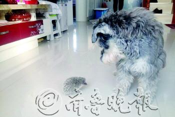 作品描述:家里有只狗狗叫“七条”,今天给它找了个新伙伴——刺猬“骰子”。