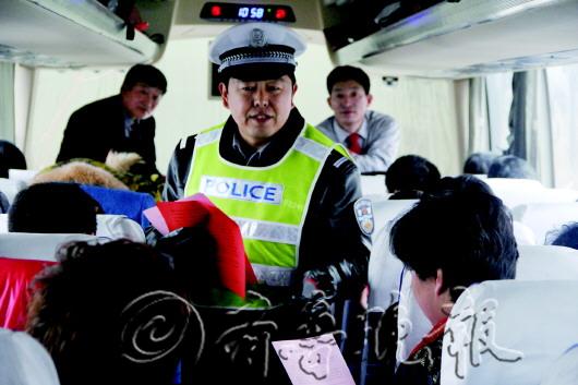 本报1月16日讯(通讯员 刘滨 记者 刘涛) 2014年春运从1月16日开始,2月24日结束,为期40天。春运首日,滨州市高速交警大队对过境客运车辆集中检查,其中在鲁北收费站口5个小时检查27辆客运车,未发现有超员现象。 1月16日上午,滨州高速交警大队联合高速公路管理部门、经营单位及驾驶人代表共计50余人在G25长深高速滨州服务区举行了春运启动仪式。随后,执勤民警来到滨州鲁北收费站,对过境客运车辆进行检查。 鲁北收费站位于滨州与河北的交界地带,通往北京、天津、河北等地的车辆都要经过此地,被称为滨州的北大门。滨州高速交警一大队二中队民警在此地设立了执勤点。 上午9点,一辆驶往天津的客运车经过鲁北收费站时被交警拦下,这是当天第一辆接受检查的客运车,民警上车清点人数的同时还不停向乘客分发宣传册,每一本宣传册上都附有民警的联系电话,“乘客如需帮助都可打册子上的电话。”一位民警说。 民警清点完人数后,又打开车的后备箱进行检查,二中队负责人刘汉亮介绍,易燃易爆物品坚决不能携带上路,如有发现立即查处。 春运40天,高速交警不仅对过往的客运车辆进行登记,还在工作地点放置了热水炉,摆放了晕车药、面包等物品,乘客如果需要,将免费提供给他们。 从上午9点到下午2点,高速交警在鲁北收费站口共检查27辆客运车,没有发现超员客车。刘汉亮告诉记者,春运第一天客流量还不是很大,一般在小年前后迎来客流高峰,“平时一天检查七八十辆客车,到了高峰期一天能查一百五六十辆。”