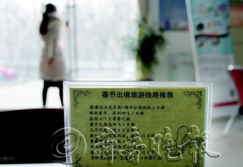 | 春节临近,各大旅行社都推出了丰富的旅游线路。 本报记者 姜文洁 摄 |