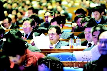 | 19日,省人大代表听取报告。 本报记者 王媛 摄 |